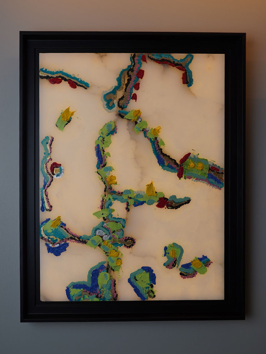 An emblematic natural stone of the Maison, alabaster is used not only as an architectural material but also as a true creative medium. Through her works, the artist engages with this translucent surface to reveal its luminous richness, its mineral depth, and its unique ability to interact with colour, light and the pictorial gesture. LEARN MORE ABOUT ANA PÉREZ GRASSANO