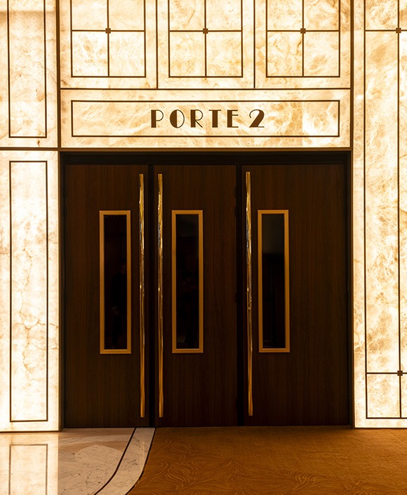 In a place steeped in history, every detail matters. The alabaster wall designed by Alain Ellouz Paris, a true guiding thread of the project, establishes a delicate dialogue between the original Art Deco geometry and a contemporary approach to materiality. Every choice—from the selection of the veining to the invisible finishing work—contributes to a coherent, understated, and timeless architectural expression. More than a decorative feature, this wall becomes a structural marker, a visual axis that bridges past and present.