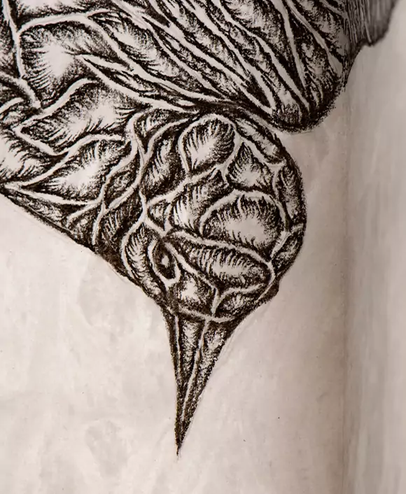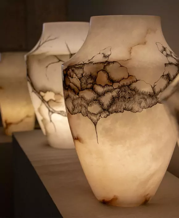 Caroline Leite shapes her work around traces of the past, blending techniques and materials to explore memory and time. Her concrete ruin sculptures, bold botanical and avian drawings, and evocative photography capture the world’s fragility. Working with alabaster, she sculpts it as a revealer of form and vibration, embodying an artistic quest where matter and light intertwine, offering a sensitive reading of our collective history.
