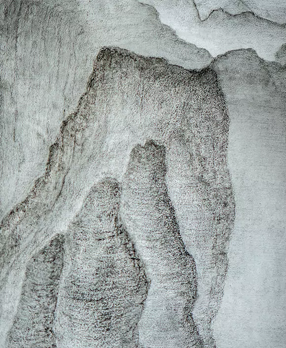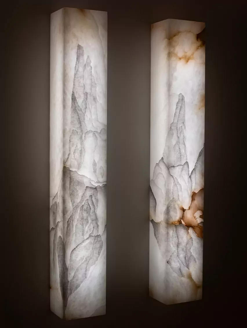 Christine Solaï, visual artist and scenographer, explores memory and transmission through diverse mediums. Trained at the Beaux-Arts de Grenoble and Le Fresnoy, she intertwines video, performance, and live art. Her collaboration with Alain Ellouz Paris marks a pivotal moment: she discovers a new medium—already inscribed with history. Captivated by the veins of the stone, she transposes her mountain drawings onto alabaster, using its natural patterns to reveal landscapes. This fusion of stone and light enriches her artistic language, where nature and history converge in a poetic and sensory dialogue.