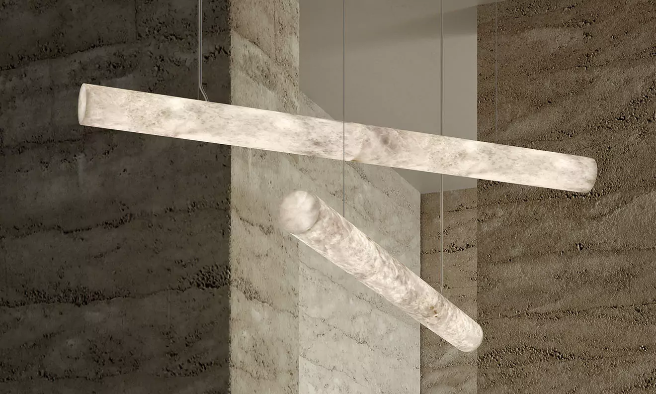 Wall sconces, pendants, table lamps, and ceiling lights subtly and distinctively interpret a vast, resolutely contemporary stylistic repertoire. With pure, modern forms, meticulously crafted from the heart of the material, alabaster—sublimated by light—reveals a unique dimension, rich in mineral elegance. As refined statement pieces with studied simplicity, these luminaires shape and structure interiors with striking intensity.