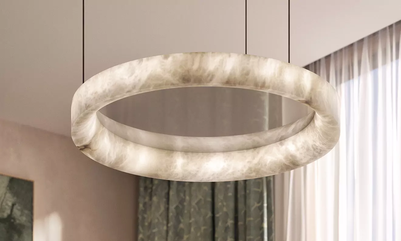 Highlighting the natural elegance of alabaster, a limestone prized for its soft, refined reflections, the REFLEXION collection offers wall-mounted and pendant mirrors, blending timeless design with versatility.