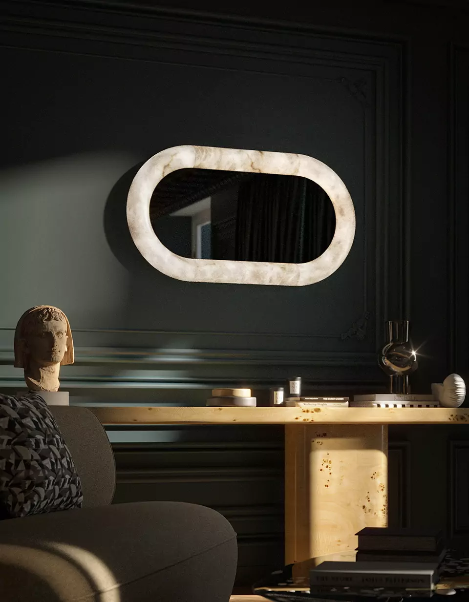 Combining backlit lighting and reflective mirrors, these exceptional decorative and functional pieces elevate your interiors, infusing them with character and depth. The reflective surface of these majestic luminaires elegantly showcases the subtle interplay between light and mineral, creating a captivating sensation of infinity that inspires contemplation.